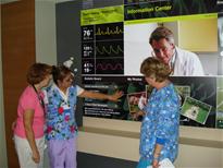Large LCD panels in each patient room provide patients and physicians with the means to concurrently display patient demographics, vital signs and medical information