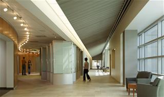 Spacious, curved corridors at the Intermountain Medical Centre, Utah, designed by Anshen + Allen (Pic: John Linden and Cesar Rubio