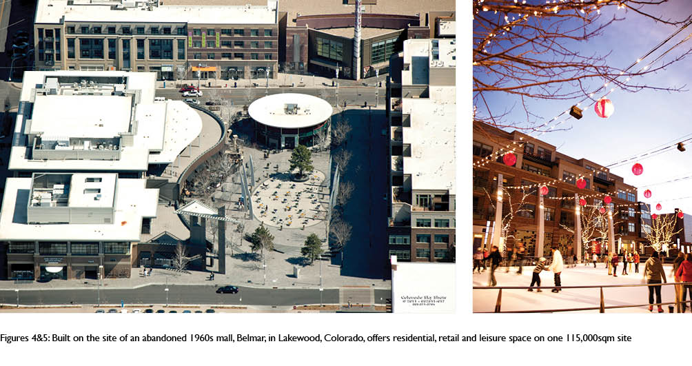 Such models clearly require major changes in thought and practice with regard to zoning, developer/community leader commitment, and other factors. The vision and support of lenders, developers, and community leaders will be critical in facilitating the conversion of ailing or abandoned shopping malls into mixed-use locales. However, when all of the necessary elements come together, the vision can be realised. For instance, Belmar community in Lakewood, Colorado, on the site of a 115,000sqm (1.4m sq ft) abandoned shopping mall built in the 1960s, has become a mixed-use development with shops, homes, and offices in close proximity to one another.25