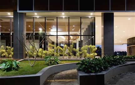 Its high-rise design is a typical response to the realities of building in dense urban environments; its sustainability measures (such as its rooftop park) and anticipated LEED certification, are less than typical for the region.