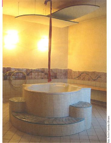 The bath must have a showerhead with a pulsing feature and the fi xed rail for the shower head must be nogged into the wall if plasterboard, so the woman by pulling up can use it for support. Keeping the bath water hot is an issue and consideration must be given to allowing higher levels of temperature or faster fl ow rates than the normal to quickly add hot water to the bath. Spa baths are not recommended due to cleaning and infection control issues.