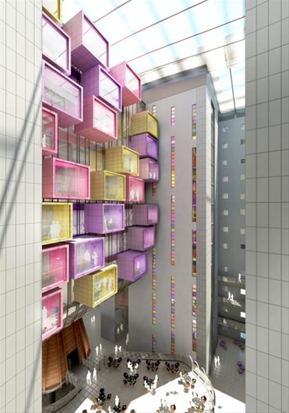“Colour and texture will be used to define different areas and functions within the complex and to create appropriate identities. Natural light will be maximised where possible and attention will be given to providing pleasing views both inside the building and out. The use of colour and other design solutions will also be used for way-finding purposes, allowing users to self-navigate with ease throughout the buildings’ many functions."