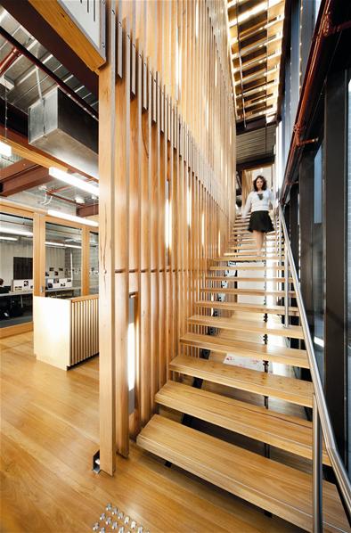 At the street edge, the materials reflect the light industrial context of the area with steel, recycled timber and face concrete block. Internally, the floors are linked by an open stair and small atrium which form the social space of the centre. Meeting rooms and all facilities are accessible from this central space, with materials relating to the exterior – timber, steel and concrete – used at a more tactile scale.