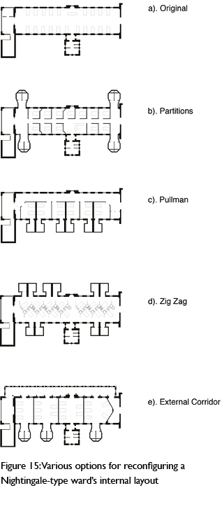 The UK’s pre-1939 stock A parallel De2RHECC investigation suggests the masonry-built ‘Nightingale’ ward type is exceptionally resilient and has the potential to contribute to the solution of the conundrum if fundamentally reconfigured to deliver NHS modernisation policy goals.14 In the early 2000s, the NHS was directed to abandon the traditional collective healthcare model of an open shared ward and adopt the single room model hitherto reserved for the very unwell and the privately insured. Pre-1948 wards built to Florence Nightingale’s original, very detailed specifications were condemned by the British government.15 Nightingale wards in Britain comprised open dormitories for, on average, 24–30 patients.