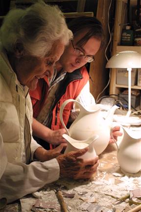 John and Eva discussing production of her goblets |