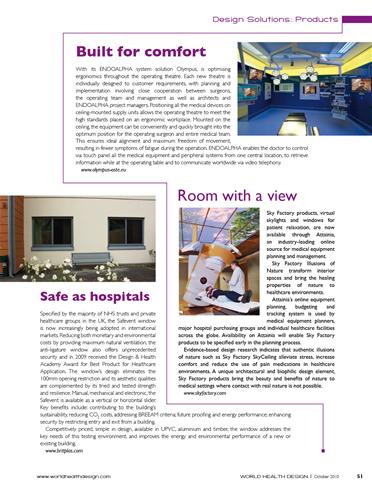 ‘Design Solutions’ is a section dedicated to highlighting products designed to improve human health, wellbeing and quality of life in healthcare, education, custodial, commercial, workplace and urban environments, providing architects, designers, health professionals and managers, project managers, facility operators and estates directors with new ideas for designing better quality environments.