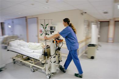 Pick and go Transporting patients between wards while monitoring their vital signs takes time and effort. Clinical staff have to disconnect the bedside monitoring system and connect the patient to a transport monitor.